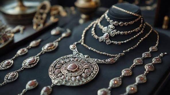 • Engraved silver pendants with motifs like mandalas, paisleys, or symbols.